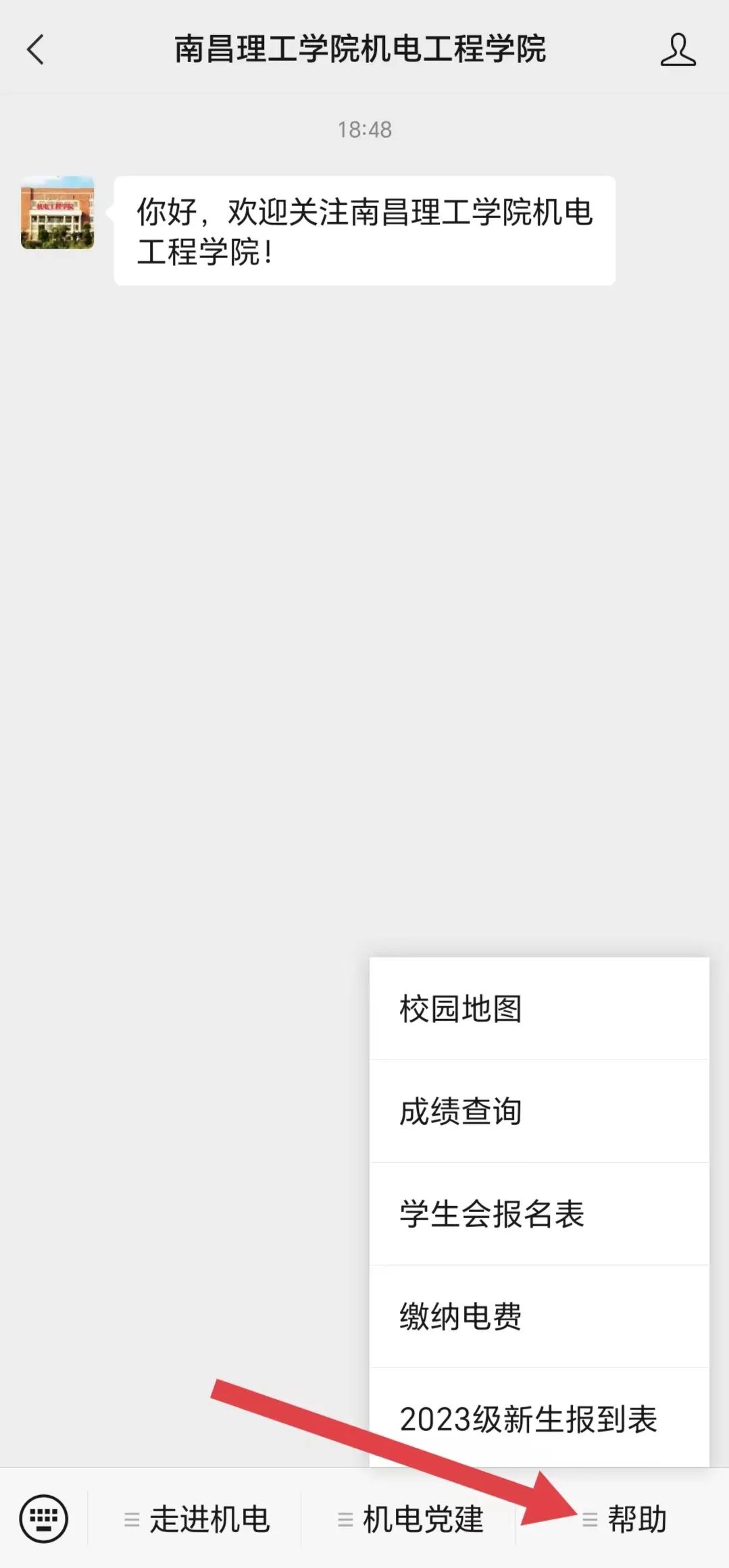 新生报到点关注机电工程学院公众号