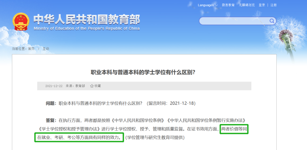 1.职业本科与普通本科一样都是全日制本科,同样是连贯培养四年,一体化设计,职业本科与普通本科学位证书具有同样效力。