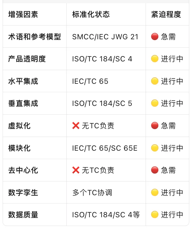 确保产品符合ISO/IEC标准(特别是TC 184、TC 299相关) 开发数字孪生能力(多TC协调,标准即将完善) 构建数据质量管理系统(参考ISO 8000系列)