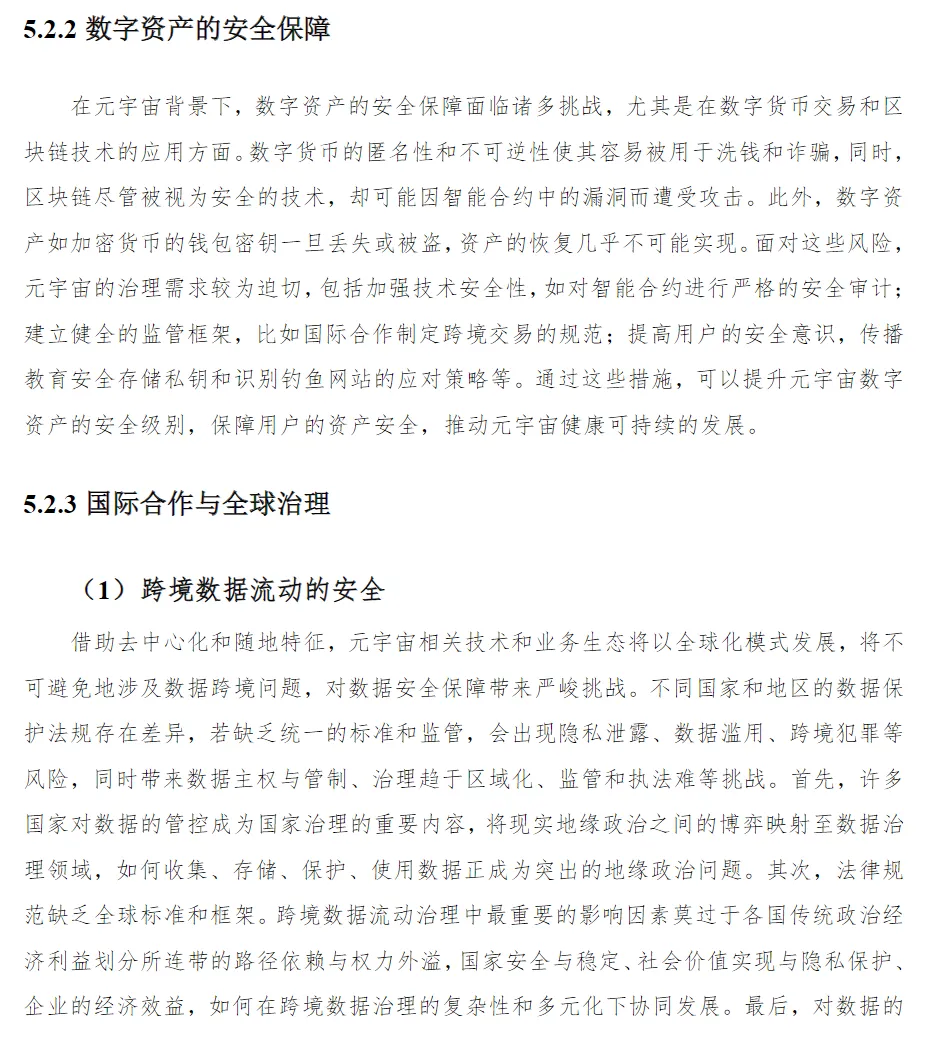 4. 跨境跨链国际合作与全球治理元宇宙天然具有全球属性,亟需跨国协作制定技术标准与治理规则。白皮书呼吁建立包容性治理框架,协调数据主权、数字身份(如DID)、税收与消费者保护等议题。DAO(去中心化自治组织)与AI代理结合(如DAO-AI)被视为未来治理新范式,可提升集体决策效率与公平性。