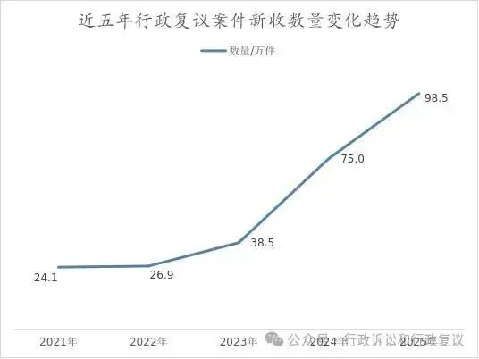 2025年全国新收行政复议案件98.5万件。层级分布呈现清晰的倒金字塔压力结构: