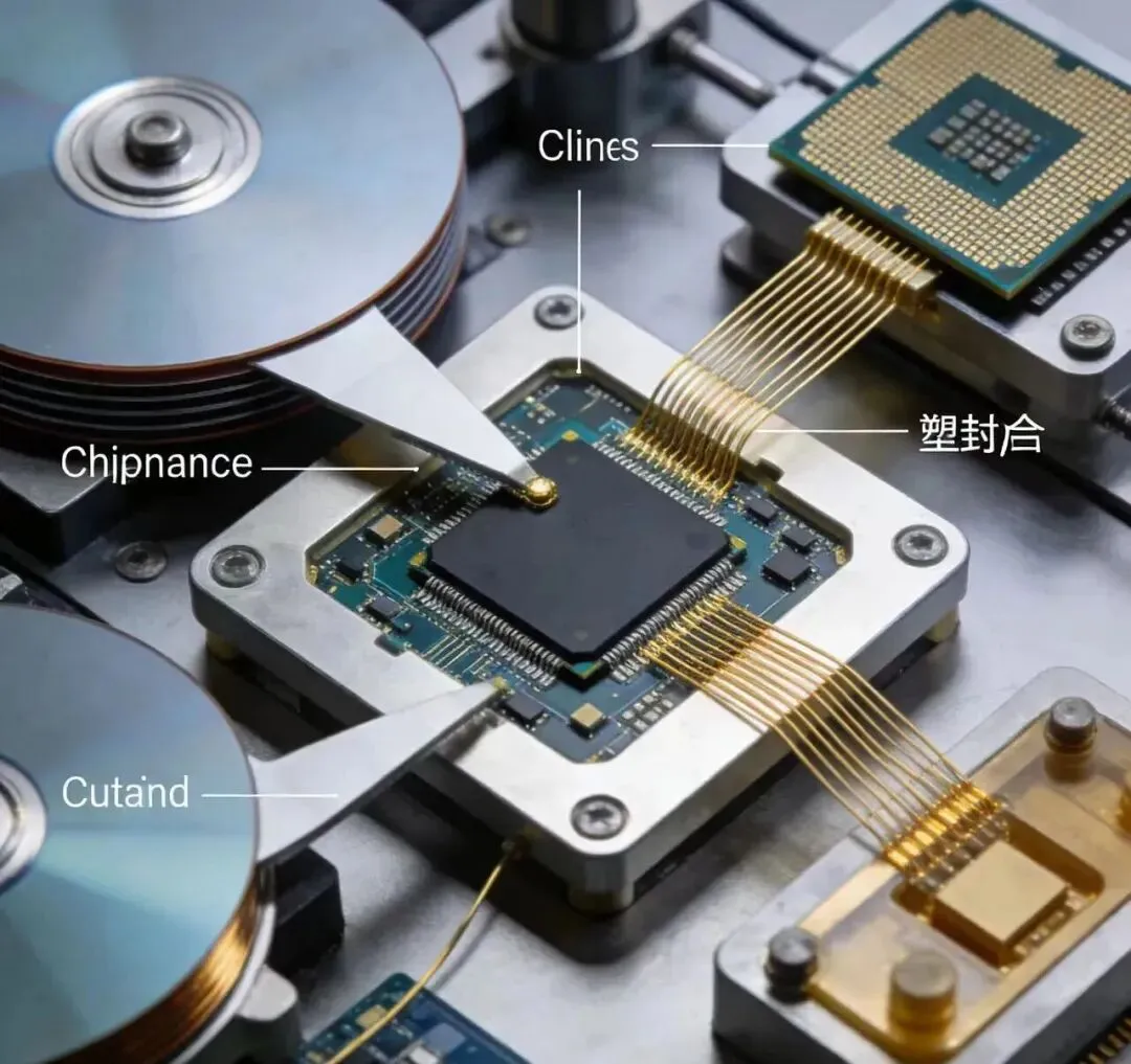 (2)引线键合:利用超细金属丝(如金丝、铝丝)将芯片上的焊盘与引线框架相连,实现电气连接。