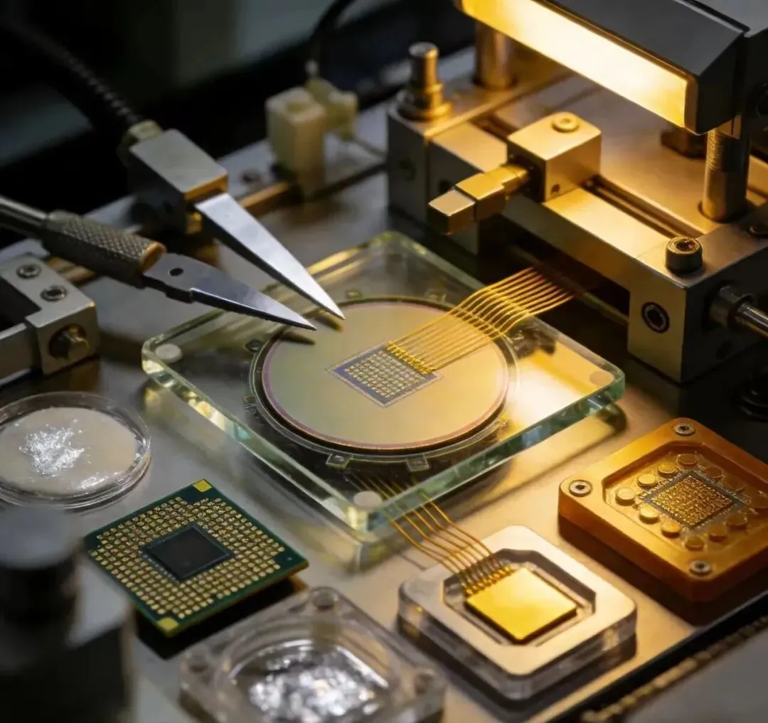 芯片封装是指将裸露的半导体晶圆切割成单个芯片后,通过特定工艺将其固定在一个支撑结构内,并建立外部引脚以便于与其他电路板或组件进行电气连接。