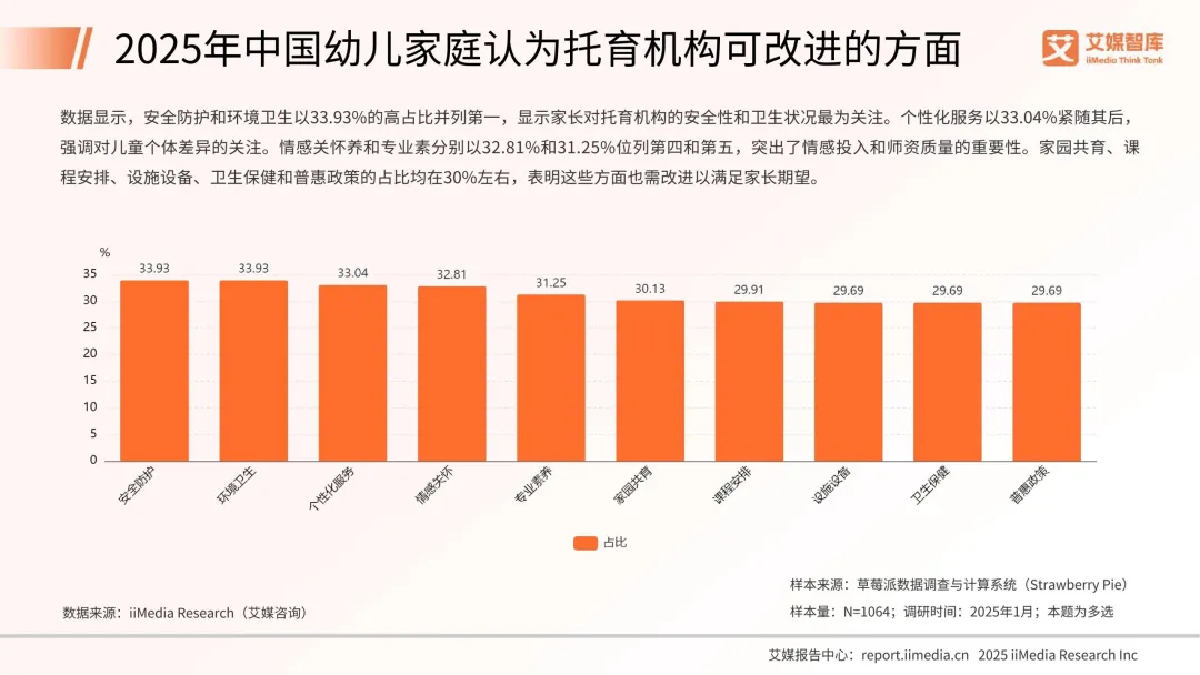 2025年中国幼儿家庭认为托育机构可改进的方面