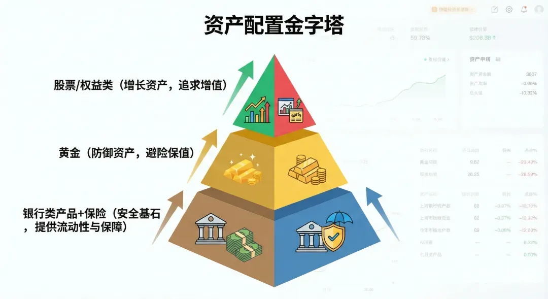 不要把所有钱都放在高风险投资里。学习他们,先筑牢底层的“安全基石”:预留出覆盖3-6个月家庭支出的应急流动资金(如货币基金、活期存款);配置好基础的人身保险(重疾、医疗、寿险),防止因病返贫。2. 重视“人力资本”与“健康资本”