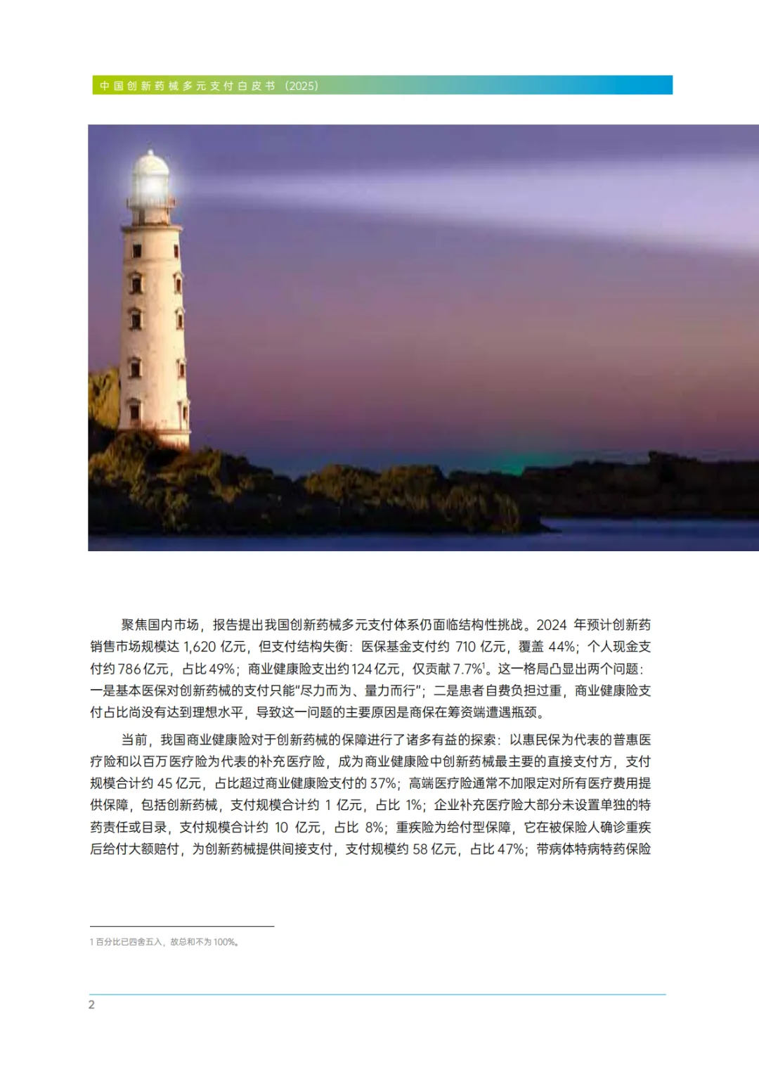 随着我国经济社会发展和居民健康意识提升,人民群众对优质医疗资源与创新药械的需求持续增长。党中央、国务院始终坚持以人民健康为中心,高度重视医药创新体系建设。然而,在人口老龄化加剧与医疗需求升级的双重压力下,单一依赖基本医保的支付模式已难以满足群众对高价创新疗法的多层次需求。在现有基本医保体系的基础上,建立包括商业健康保险、慈善援助基金等在内的多元支付体系成为破解创新药械可及性难题的关键路径。