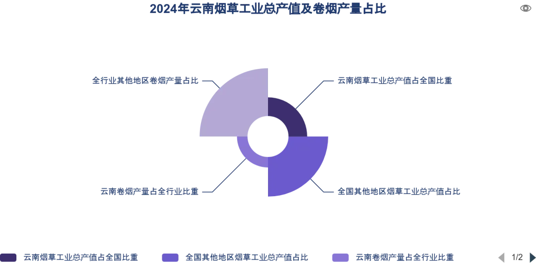 全国烟草工业总产值保持稳定增长态势,其中云南作为核心产区的贡献度持续攀升,支柱地位日益凸显。从全国范围看,卷烟产量呈现持续稳定增长,在全国产能稳增的格局中,云南的贡献不仅规模巨大,且权重持续提升。