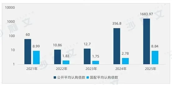 2025年港股打新市场再现热潮,全年IPO累计获得1,400万人次认购,较上年增长超12倍。公开认购倍数均值高达1,684倍,较2024年大幅提升,更有40只新股超购千倍以上。另外,90.28%的新股实现溢价发行,反映市场信心强劲。