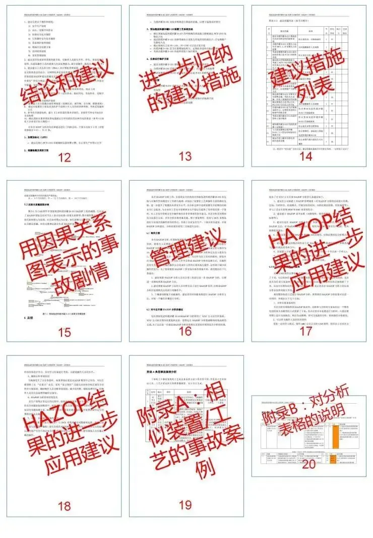 报告中有一部分内容特别重要,这就是报告的“总结”部分。如果能够通过1-2页的报告“总结”部分,了解装置运行风险是否受控或新项目设计是否需要根本性的改变,并知道需要跟进的关键改进建议就已经足够了。HAZOP总结的内容至少包含以下内容: