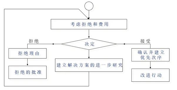从初始报告和最终报告可以看出,HAZOP的建议是允许拒绝或推翻的,但是建议决绝必须遵循一定的流程并做记录,典型的HAZOP建议接受或拒绝流程如下图一:
