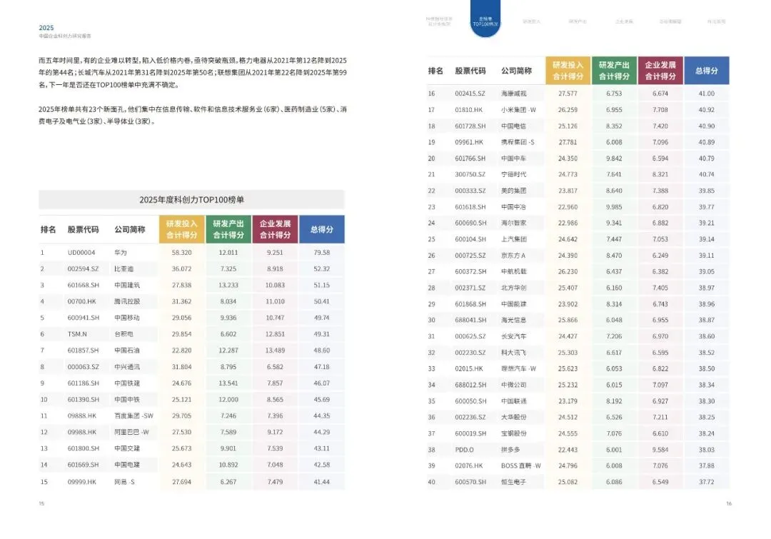 2.1 中国企业科创力TOP100排行榜