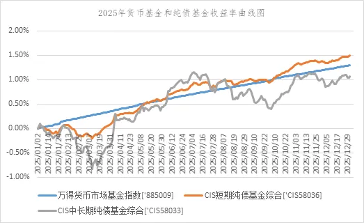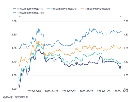 2025年随着央行进一步实施降准降息,国内无风险利率中枢呈现系统性下移。目前六大国有银行挂牌的1年期、3年期和5年期定期存款利率已分别降至0.95%、1.25%和1.30%,其中1年期利率已正式跌破1%的心理关口。传统储蓄的吸引力显著下降,驱使资金寻求收益其他替代资产。然而被视为主要替代品的债券市场也并非坦途,一方面,利率下行带动新发行债券的票息普遍走低;另一方面,债券资产全年震荡,资本利得贡献不稳定,导致整体回报率受限。根据同花顺数据,货币基金指数、短期纯债基金指数和中长期纯债基金指数2025年度的收益率分别为1.29%、1.49%和1.06%,值得关注的是,中长期纯债基金指数的收益甚至未能跑赢流动性更佳的货币基金。此格局清晰地表明,单纯依赖传统存款或进行简单的债券配置已难以满足基本的收益需求,低利率与高波动并存,市场正迫使投资者在波动中转向更稳定或更具弹性的替代品种。