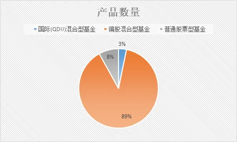 产品情况方面,各家的运作存在差异。其中产品类型方面89%为偏股混合型,合计55只;普通股票型5只,占比8%;以及2只QDII混合型产品(均为医药主题)。