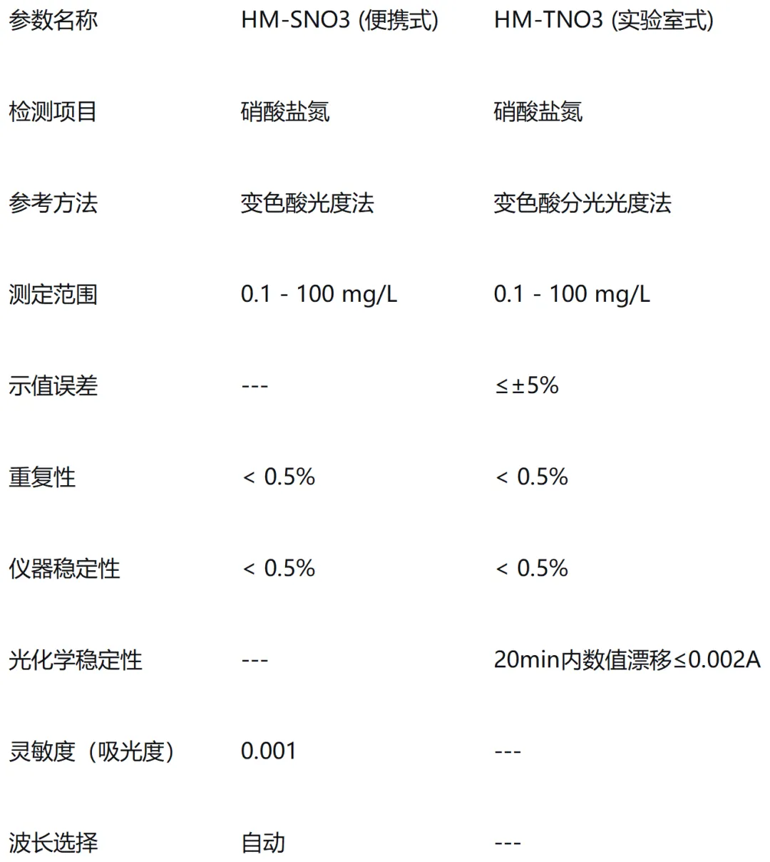 产品基础信息1.1. 产品系列概览1.2. 型号 HM-SNO3 (便携式硝酸盐氮检测仪)1.3. 型号 HM-TNO3 (实验室硝酸盐氮测定仪)