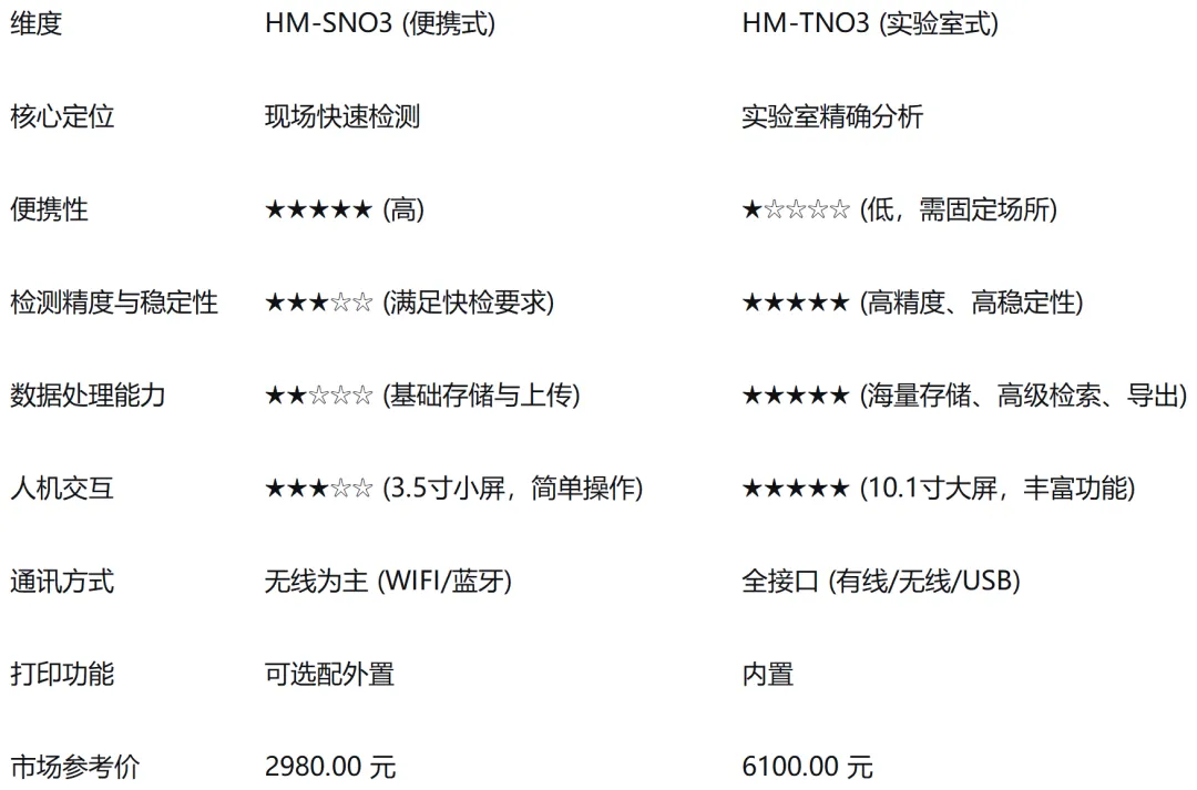 实验室批量检测 (推荐 HM-TNO3): 第三方检测机构或企业实验室每天需要处理大量样品。HM-TNO3的大容量存储、高效数据管理和内置打印功能可显著提升工作效率。