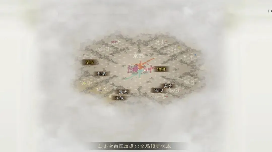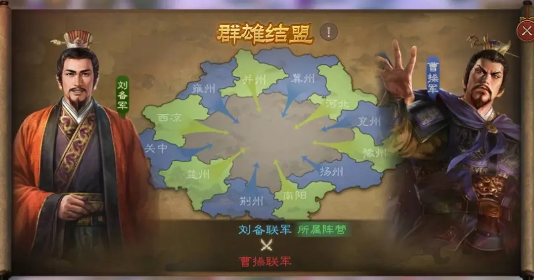 从这个图可以看到,十二个州分成四个方向,不在一个方向的州虽然从群雄结盟这个图看是挨着的,实际并不是,还是有点距离的,每个方向选中间的州基本会被左右围殴。