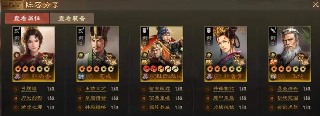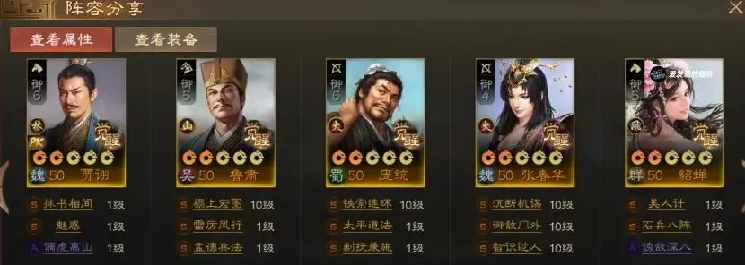 五本后,可将张春华/吴国太换成许攸,伤害更高CD更短,而且你聚怪之后许攸这个战法很容易打到多个单位。