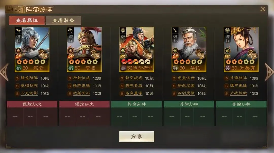 但也有明显的缺点,首先就是限定死了只能在吴国组队,选择就很少,而且会和富贵弓冲突得比较严重。其次是这种DOT类武将都是中慢速,即使赢了战损也很难低。