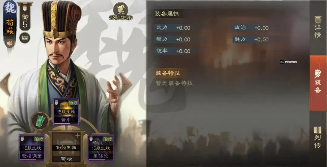 *六级地开始可以用上的技巧,把你的荀彧换成盾兵或者枪兵,坦度直线上升,当你感觉站不住的时候就可以用这个技巧,转兵种道具在史官馈赠里,非常便宜。