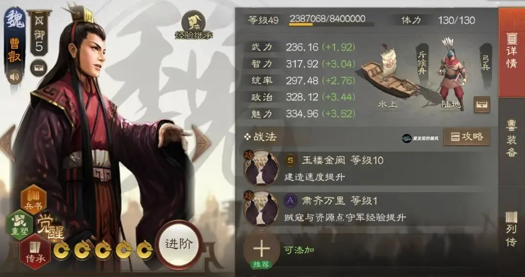 前期校场出来之后,非常推荐放各种内政官上去,提升一点等级。