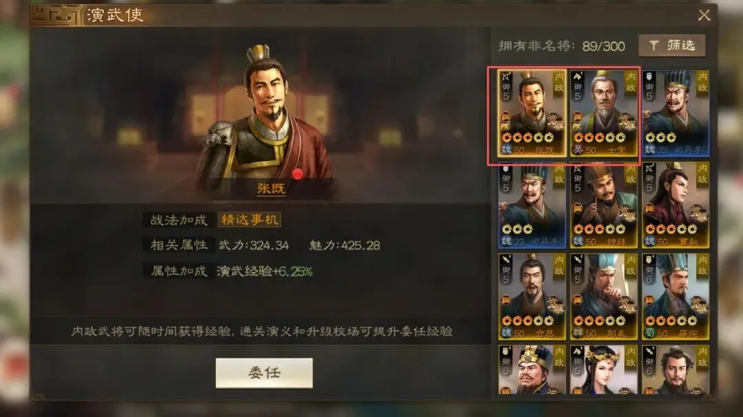 (演武的时候,可以将主政官换成张既,打地的时候再换成费祎,吃经验加成)
