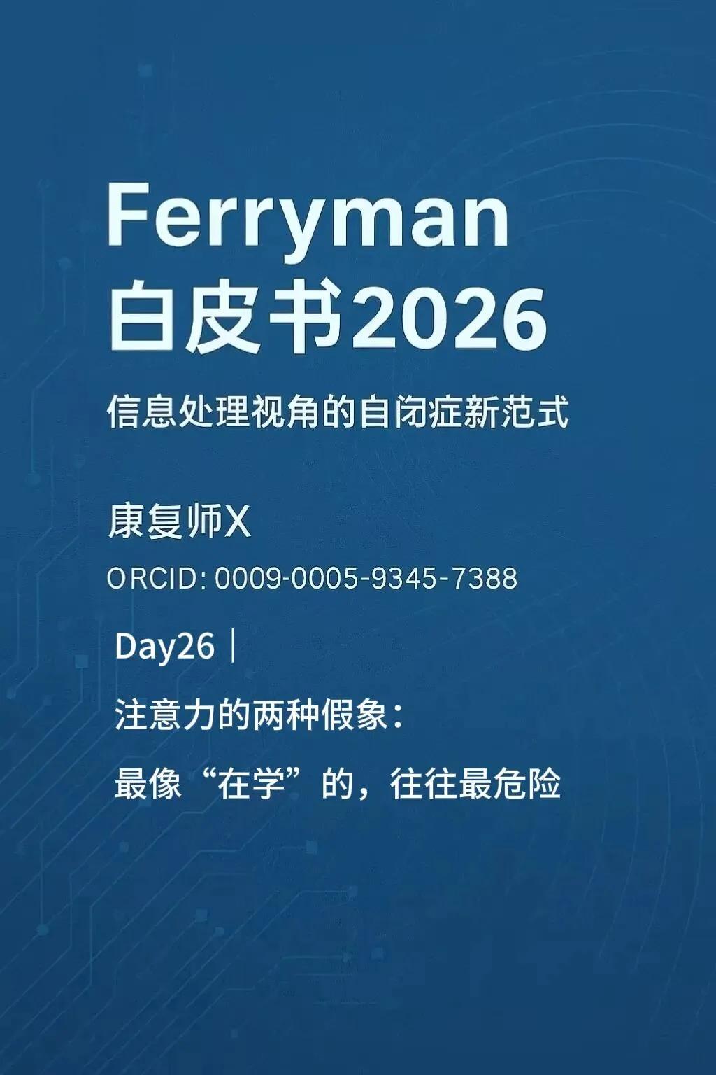 本白皮书《Ferryman 白皮书 2025:信息处理障碍视角下的自闭症干预模型》及系列内容为 康复师X(Ferryman 体系)原创,享有完整著作权。