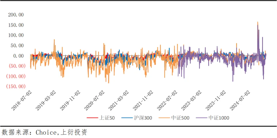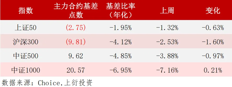 基差方面IH、IF、IC(长期拟合基差)贴水率扩大,为1.95%、4.12%、4.85%;IM(长期拟合基差)贴水率收敛,为6.95%。
