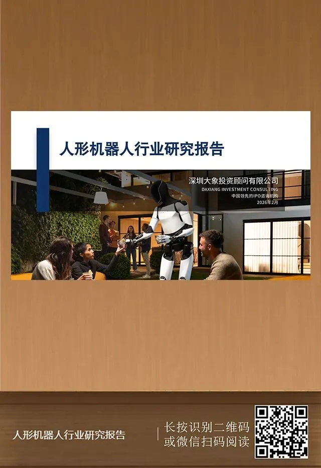 上探人形机器人的领先发展,下接商业转化的坚实锚点,大象投顾锚定新质生产力核心赛道,以专业洞见赋能产业跃迁,以前瞻视野解锁发展新局——人形机器人,开启未来无限可能,我们愿与优秀企业并肩同行,提供全方位的全球化咨询及资本服务。