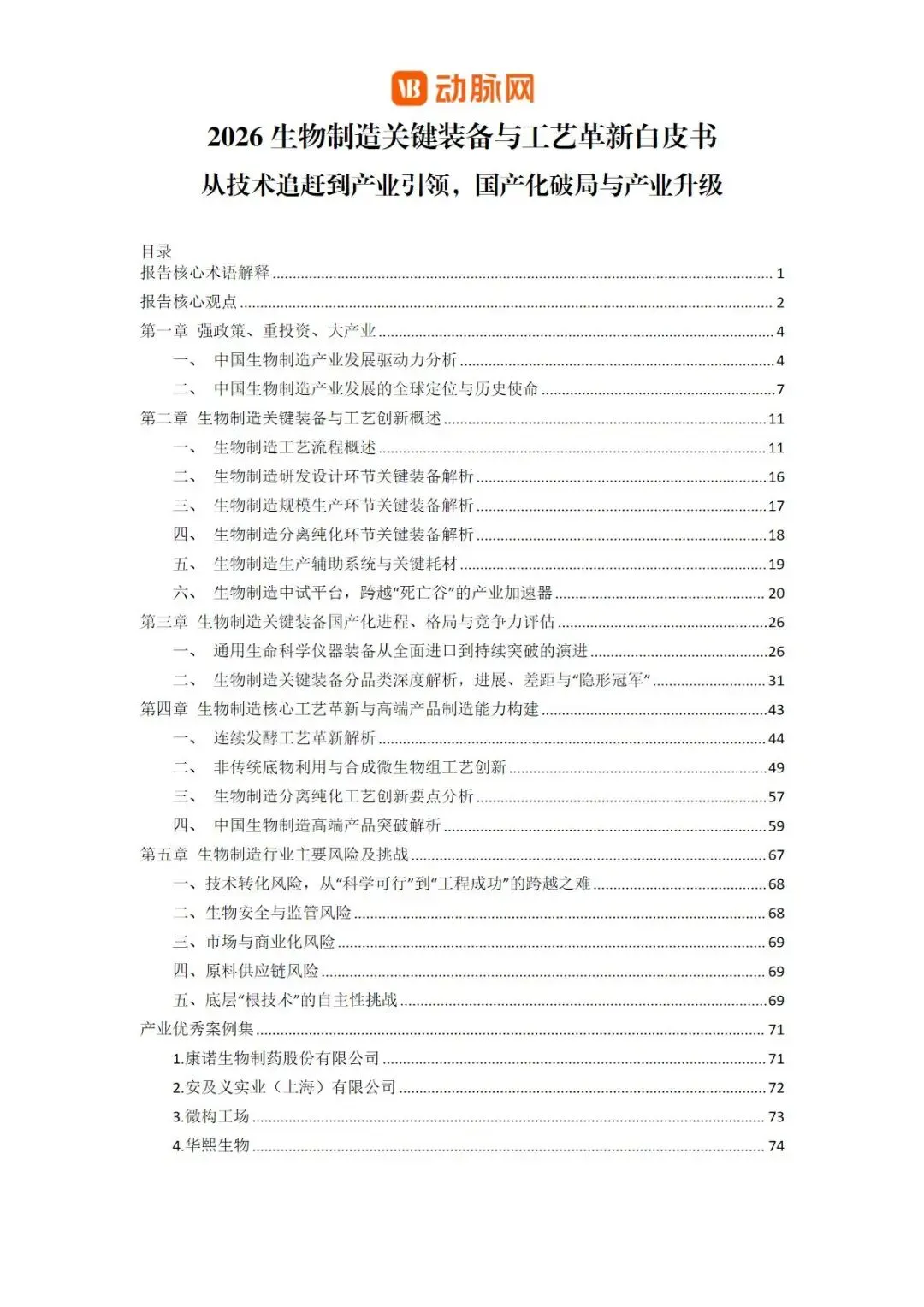 资源名称:动脉网《2026生物制造关键装备与工艺革新白皮书》78页
