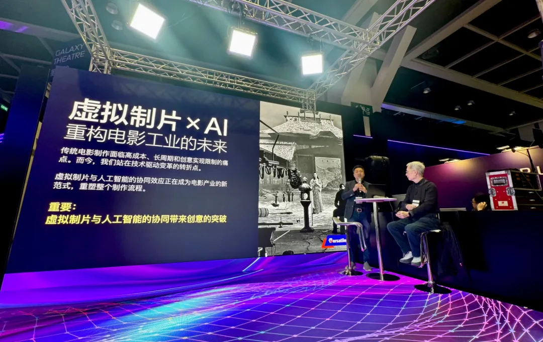 虚拟制片负责工业承载,将AI生成内容进行实时渲染、光影校准、镜头匹配、现场可控化处理,转化为可上映的工业级成品。