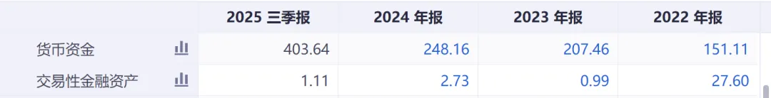 截至25年9月底,公司账上货币资金403亿元,比24年比多了150多亿元。多出来的150亿元可以拆分成两个部分,一部分是今年5月份去香港上市,融了100亿元出头,其余50亿元是这段期间经营积累下来的。