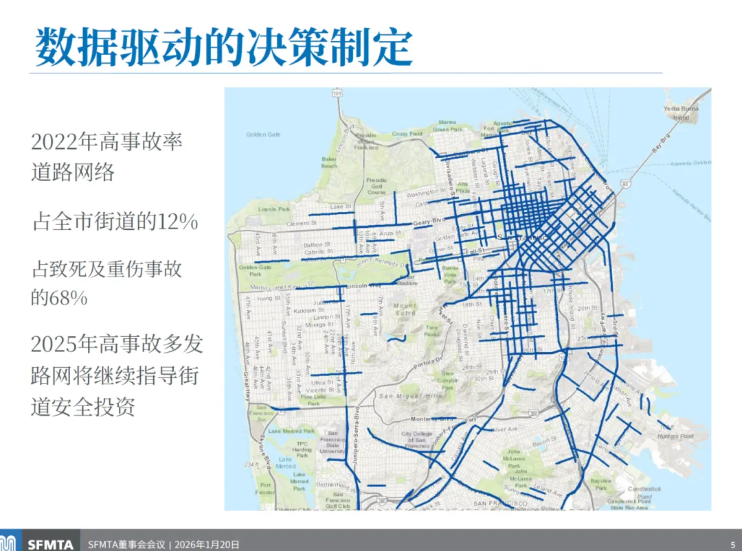 2025年9月,旧金山监事会全票通过了《街道安全法案》(Resolution 437-25),这标志着在该市推行了十年的“愿景零方案”(Vision Zero)因未能达成零死亡目标(2024年交通死亡人数达到43人的高位)而被正式取代 。