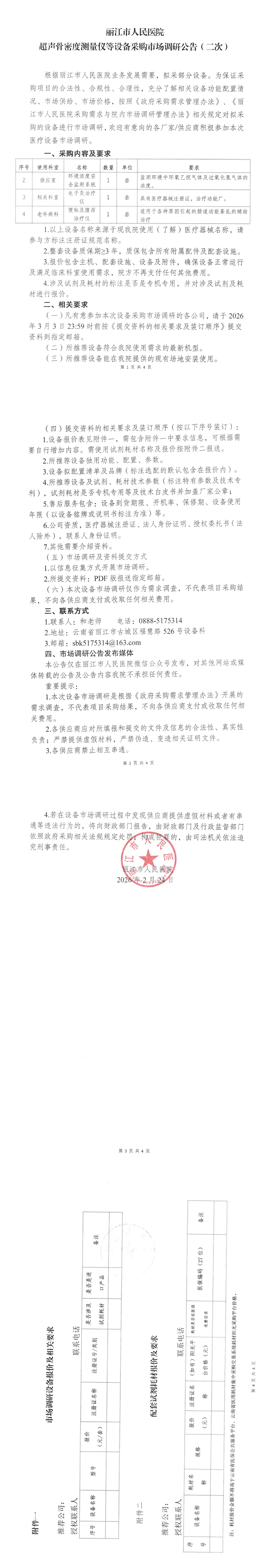 丽江市人民医院超声骨密度测量仪等设备采购市场调研公告(二次)