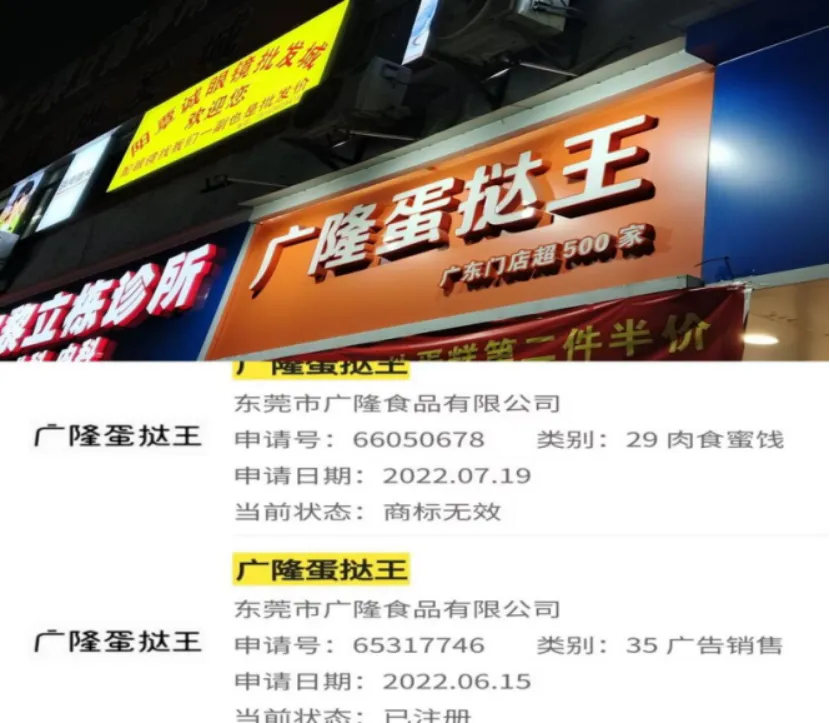 为防抢注,东莞市广隆食品有限公司累计申请 300 多个商标,构建全方位保护网。如今全国 600 多家门店统一使用该商标,招牌蛋挞年销量超 7000 万颗,“前店后场” 模式让商标与产品深度绑定。