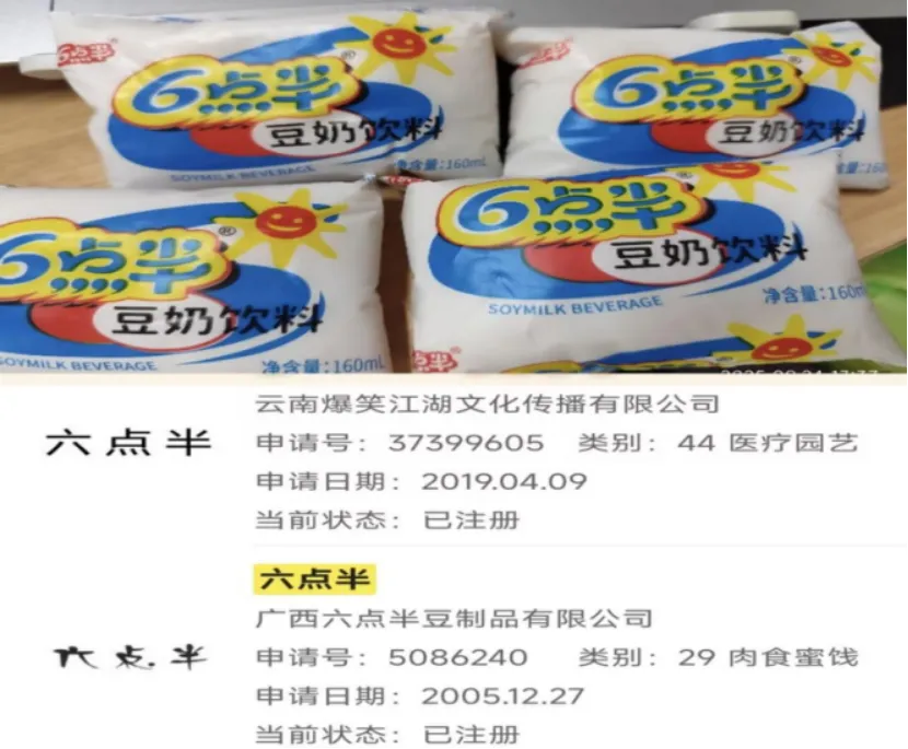 广西六点半豆制品有限公司的 “六点半” 商标已成功注册 29 类、30 类等核心类别,在产品包装、宣传材料中规范标注注册信息,强化品牌辨识度。