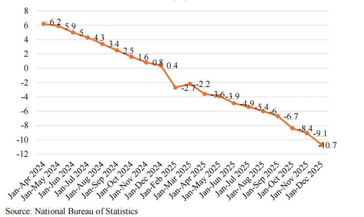 (趋势描述:从2021年的6.2%逐年下滑,2024年为-2.7%,2025年进一步降至-10.7%)