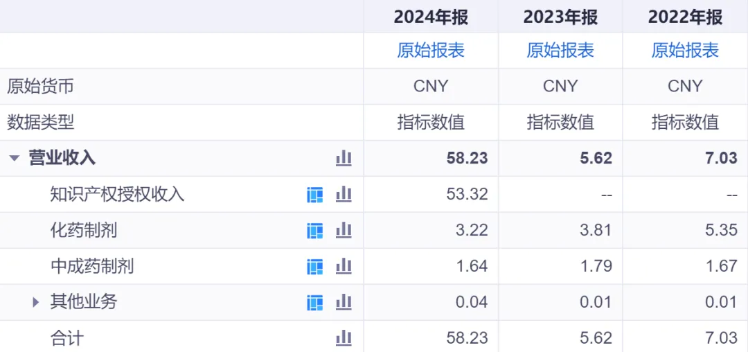 公司的传统业务逐年下滑。24年有一笔大额的知识产权授权收入,就是与BMS合作BD收入,收到8亿美元的首付款。公司已经出了25年的业绩预告,收入是25亿元,收入里包含了第一笔里程碑首款2.5亿美金。