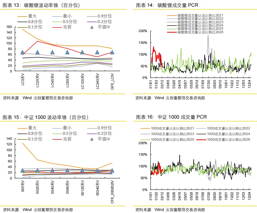 结构上看,国内期权波动率具备温和提升空间,但难现全面冲高。股指期货延续节前判断,波动风险有限;碳酸锂预期平稳偏强,波动率以稳为主。需重点关注外盘传导品种:白银、原油波动率已处高位,即便假期波动显著,节后进一步持续上行空间有限,若出现大幅高开与剧烈震荡,应以控制风险为主。