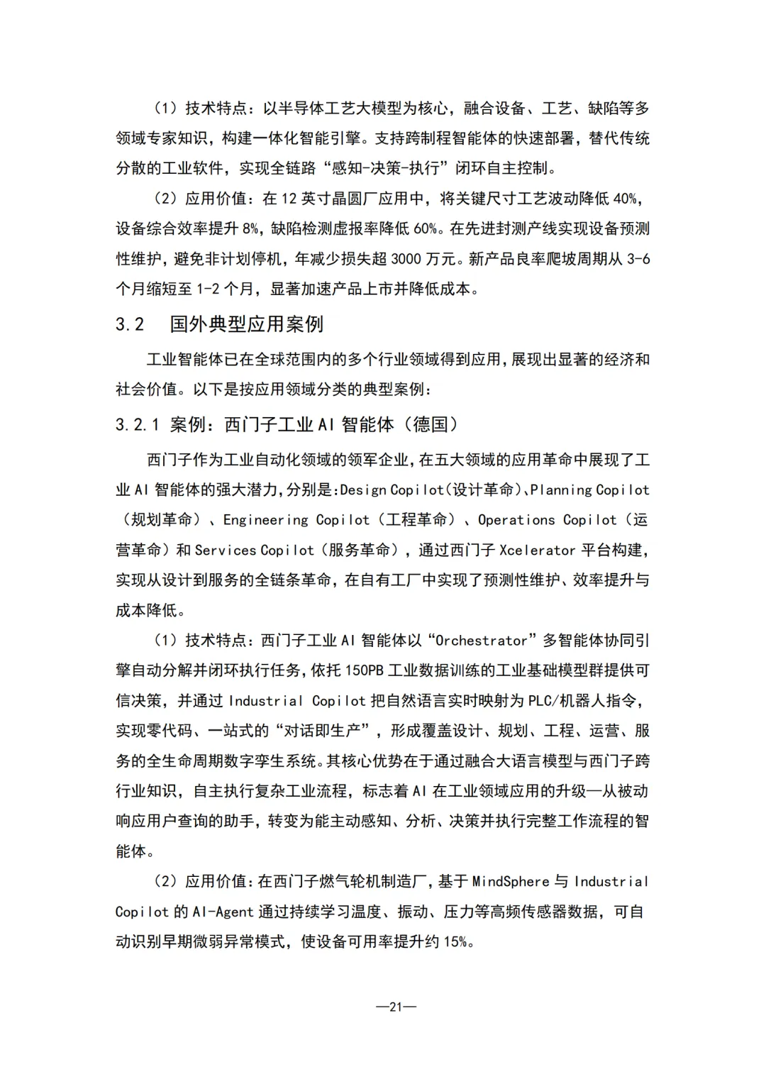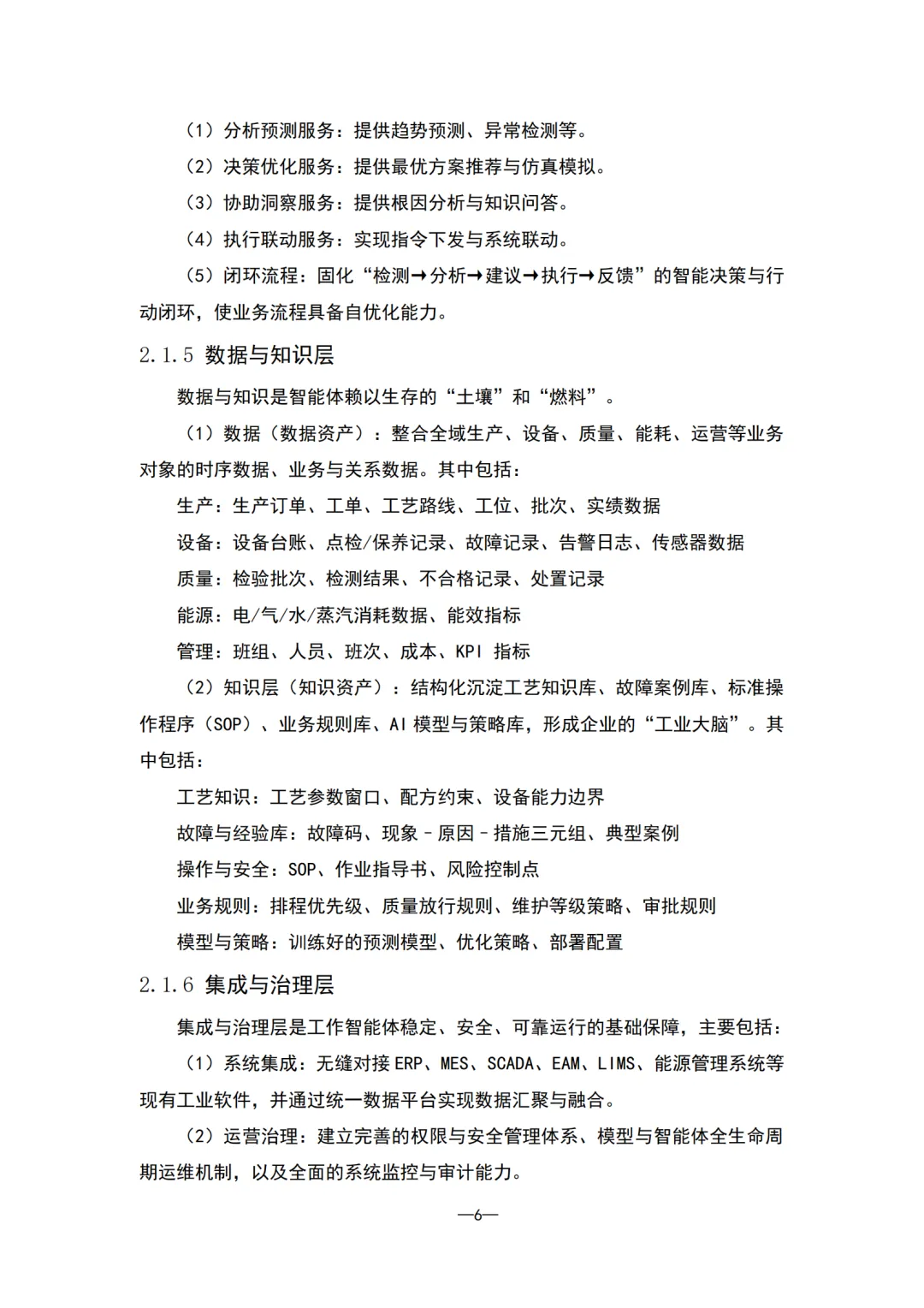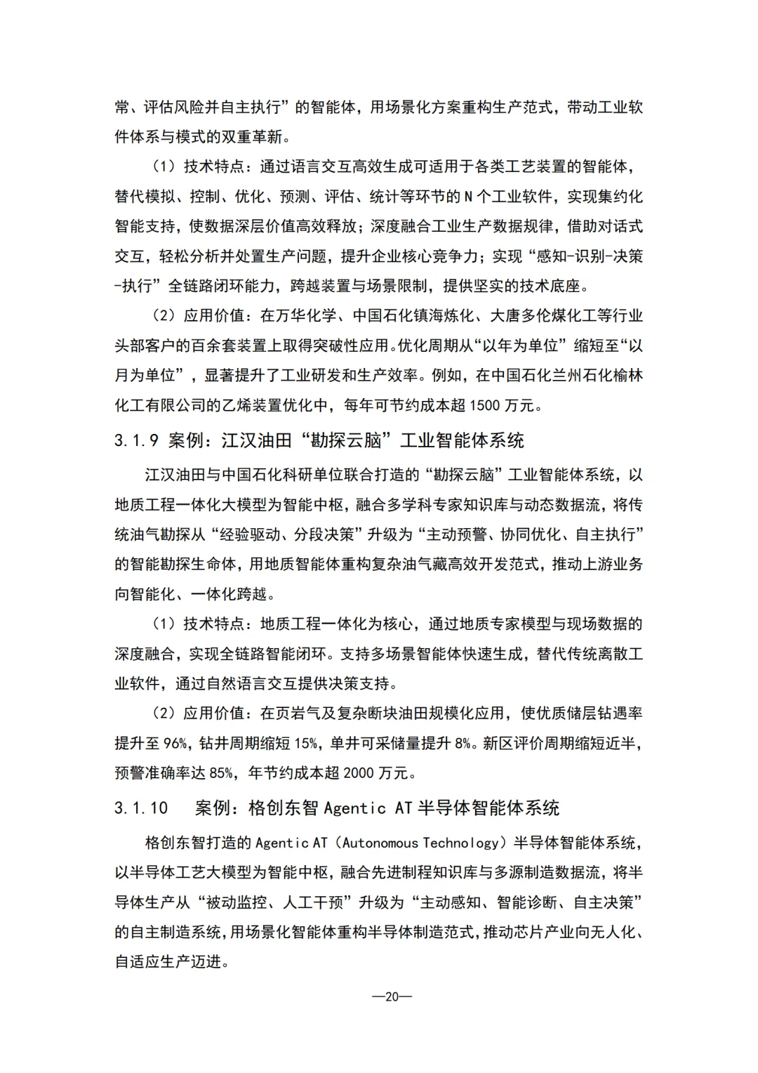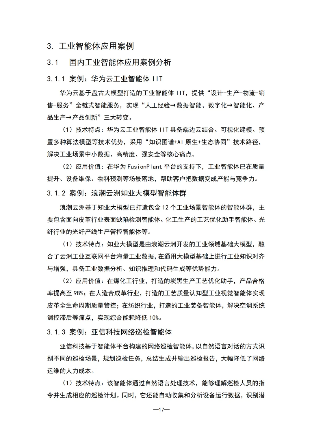 架构设计:创新性构建了业务架构、技术架构与安全架构三位一体的工业智能体体系,涵盖感知连接、认知决策、执行控制、协同集成等关键技术;