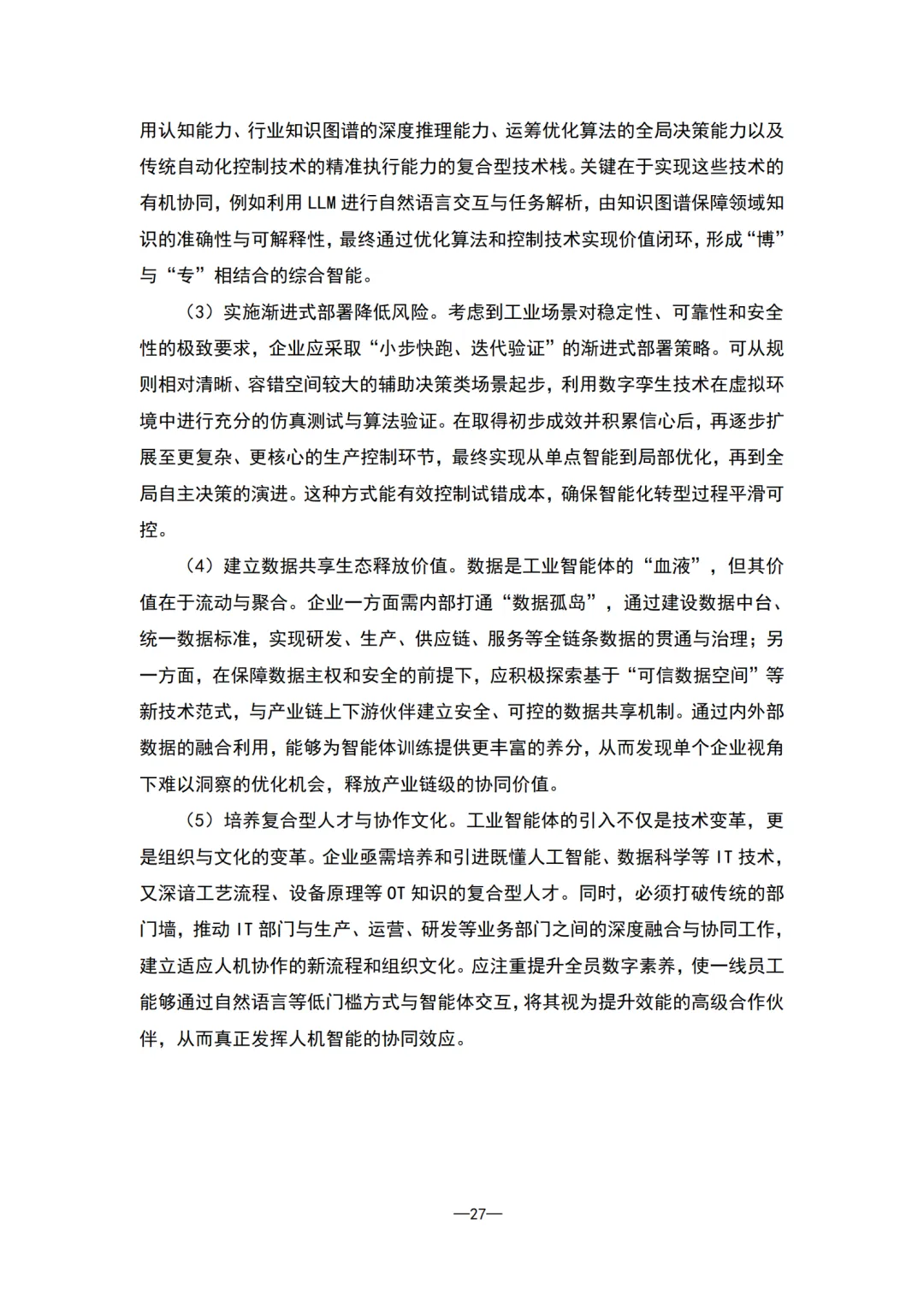 本白皮书兼具理论深度与实践广度,旨在为政府部门、制造企业、科研机构及产业生态伙伴提供可参考、可复制、可演进的工业智能体发展指南,助力中国制造业迈向高质量、智能化、绿色化的新型工业化道路。
