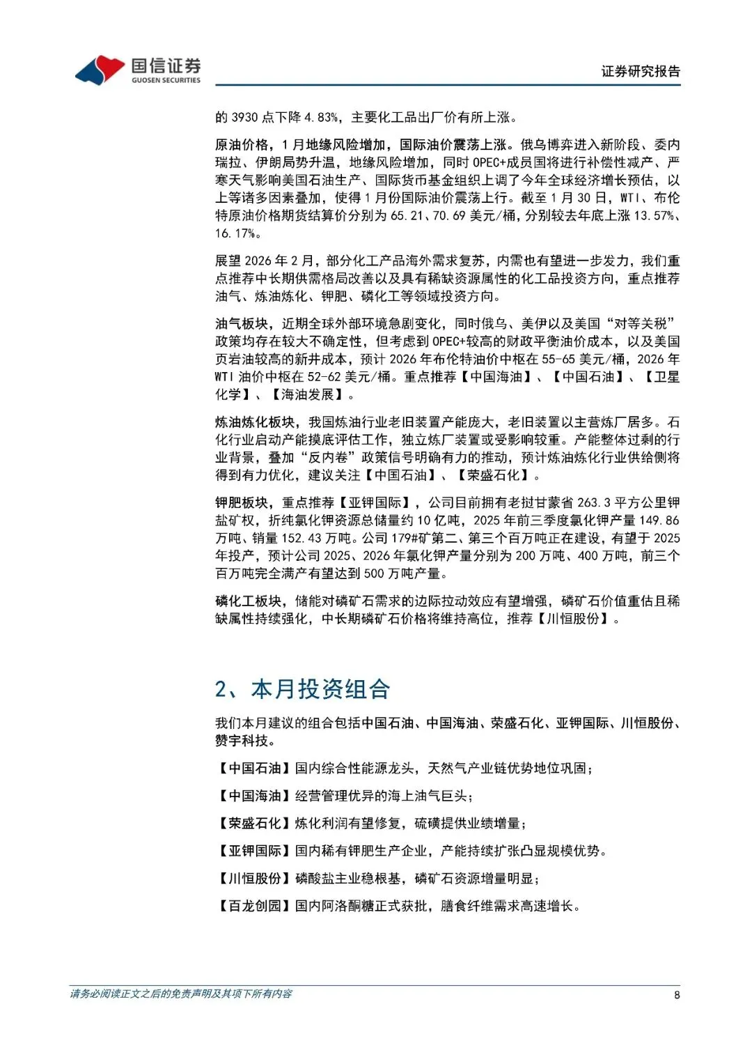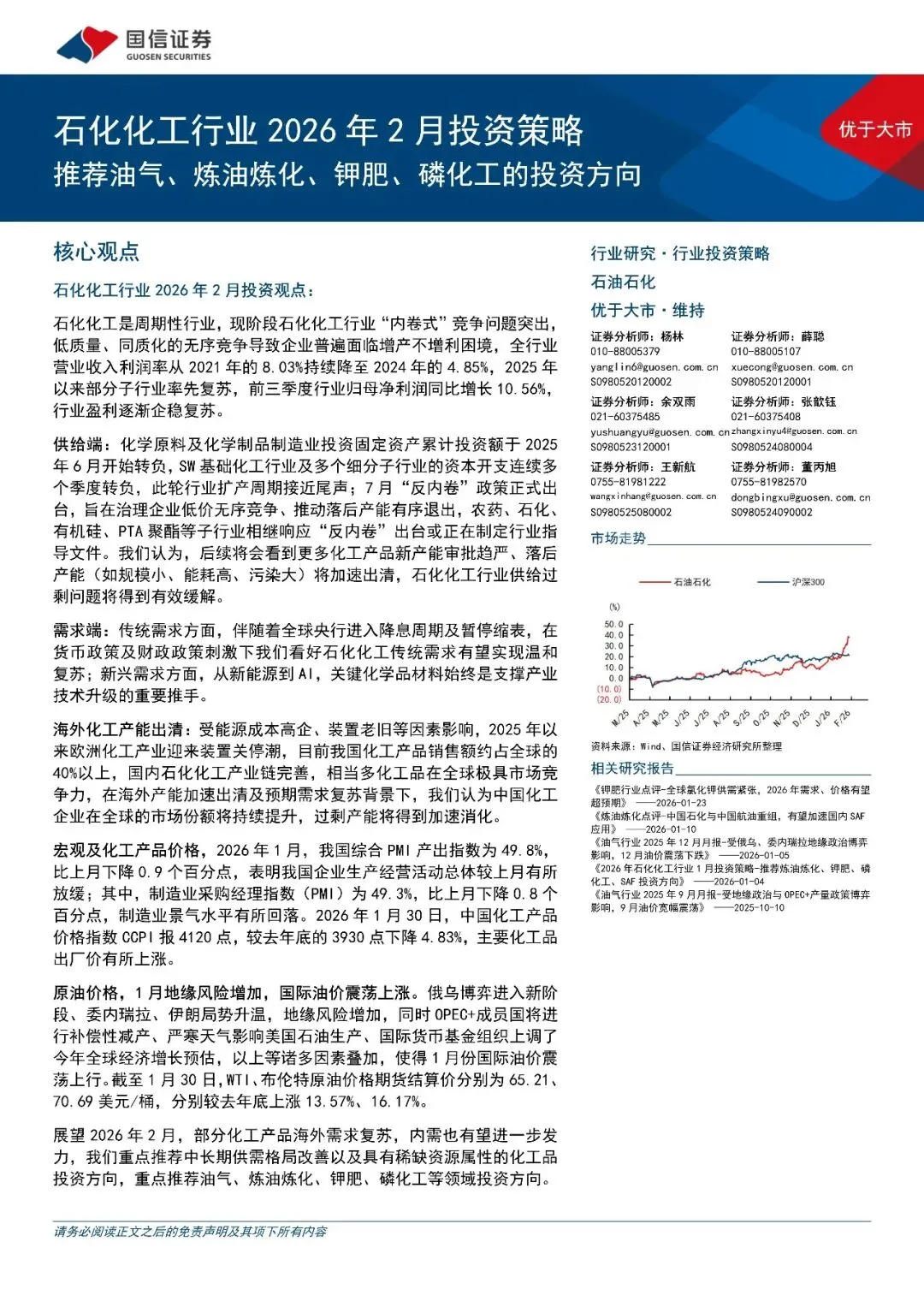 石化化工行业2026年2月投资策略:推荐油气、炼油炼化、钾肥、磷化工的投资方向-260202-国信证券-45页