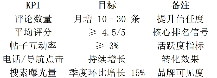 季度:审查 NAP 一致性、本地 SEO 联动优化、测试广告投放、申诉违规记录。