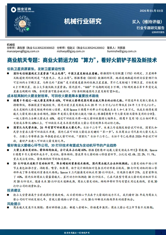 国投证券-机械行业:商业航天产业加速,关注3D打印服务商、关键结构件、太空光伏产业链.pdf