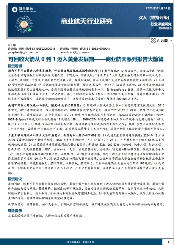国金证券-商业航天行业系列报告火箭篇:可回收火箭从0到1迈入黄金发展期.pdf