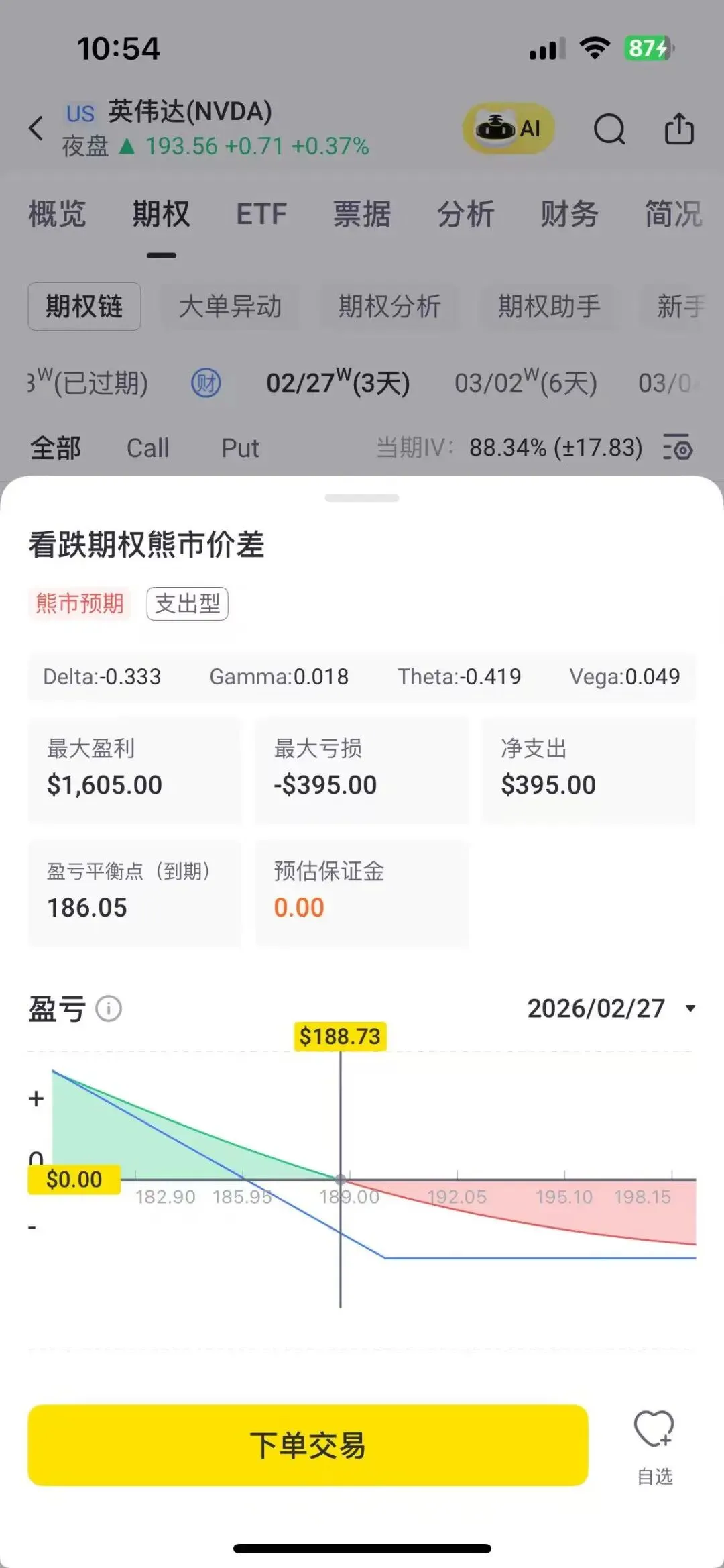 买入 190 PUT / 卖出 170 PUT(0227 到期)