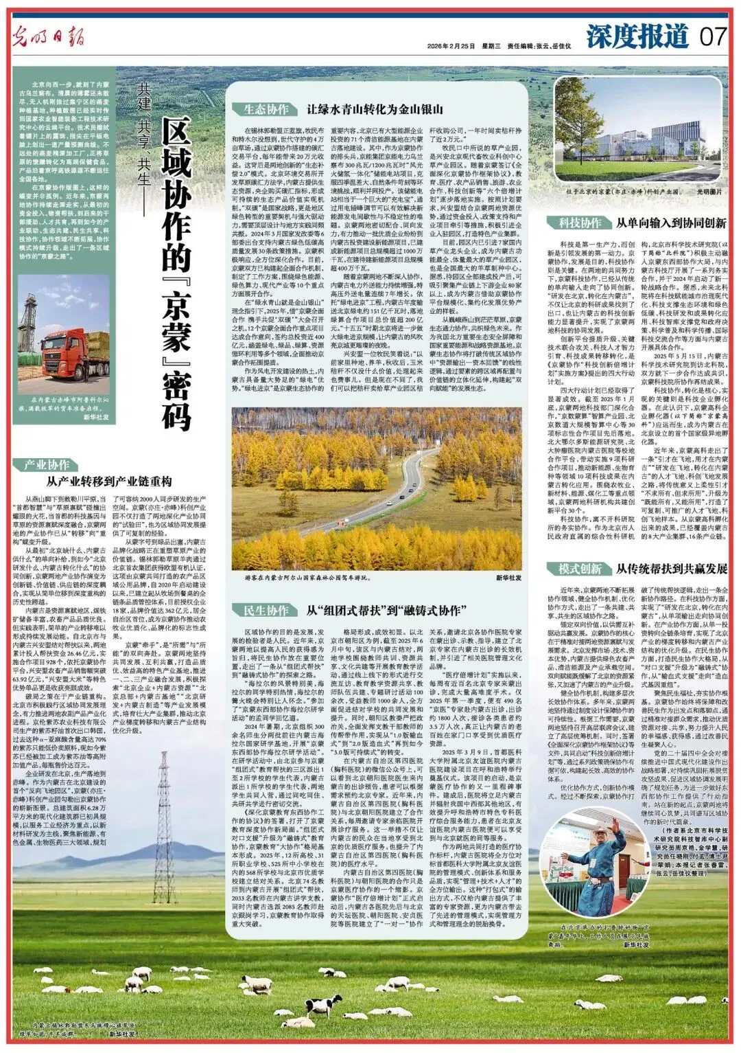 在京蒙协作版图上,这样的蝶变并非孤例。近年来,京蒙两地协作持续走深走实,从最初的资金投入、物资帮扶,到后来的干部援助、人才共育,再到如今的产业联动、生态共建、民生共享、科技协作,协作领域不断拓展,协作模式持续升级,走出了一条区域协作的“京蒙之路”。