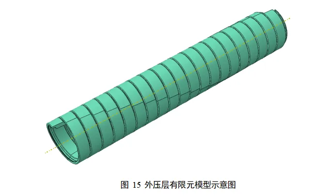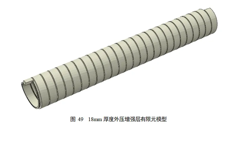 1、本报告基于6寸非金属柔性管的结构、材料及载荷设计参数,建立了各功能层的实体仿真模型,能够模拟各功能层在内压、外压、拉伸及弯曲载荷作用下的应力应变状态,从而为柔性管的结构设计提供参考依据。