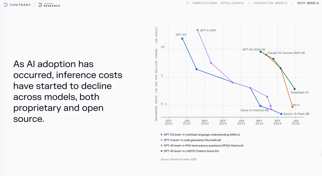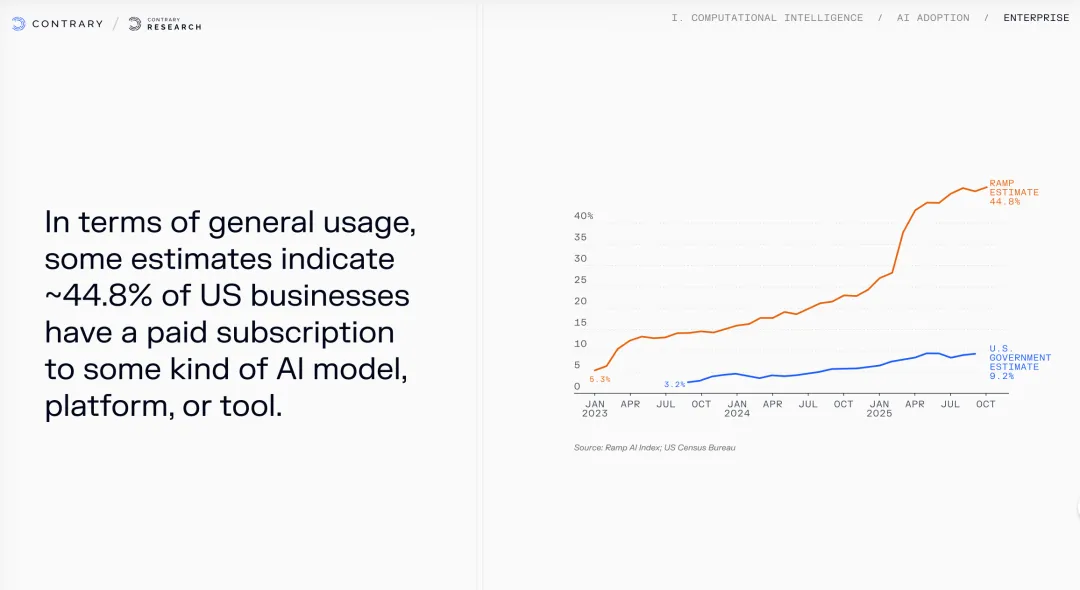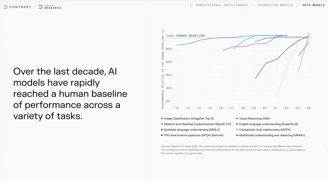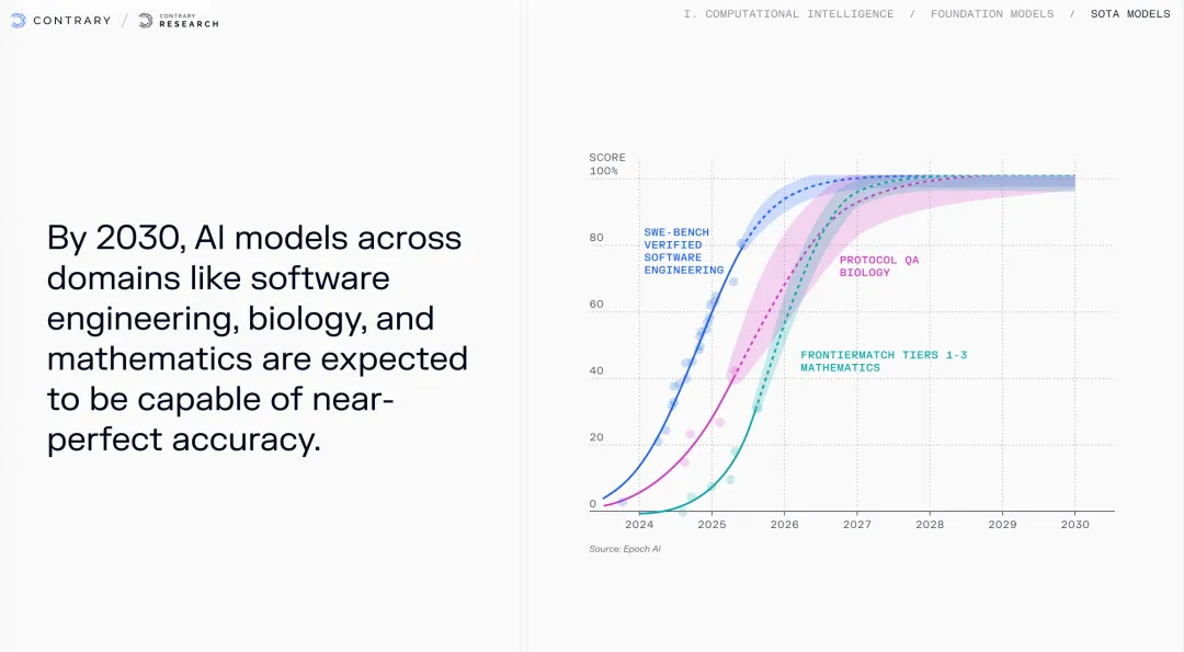 当AI从"能说话"变成"能干活",我们的商业世界正在发生什么?放假期间读了来自硅谷知名的研究型投资机构Contrary的一份研究报告,他们每年发布的《科技趋势报告》被很多VC和创业者视为风向标。这份2026年的报告,标题很直接——"计算智能正在吃掉世界"。但比这个标题更震撼的,是里面的一组组数据。这份报告有350多页之长,通览后,我先从三个层面来提炼几个要点跟各位分享:技术现实、格局重构、商业落地,最后我们一起思考:作为想成为“超级个体”的各位,无论是创业者还是投资人,我们应该如何行动?