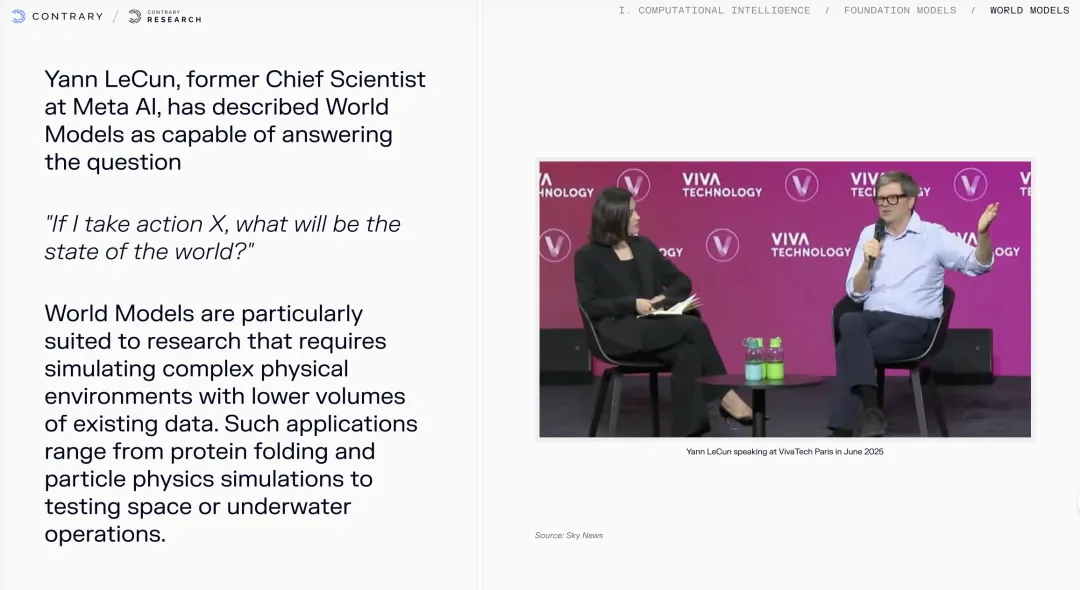 现在进入最关键的第三部分:为什么AI的落地比想象中慢,又比看起来快?报告呈现了一个巨大的数据鸿沟。根据企业支付数据(Ramp统计),44.8%的美国企业已经为AI服务付费;但根据美国人口普查局的官方调查,只有9.2%的企业真正在生产流程中使用了AI。这35个百分点的差距,就是当前AI产业最大的机会窗口——"最后一公里"的落地难题。问题出在哪?报告显示,信息技术、金融、专业服务采用率最高(20-25%),而建筑、餐饮、物流最低(<5%)。这不是技术问题,是组织改造问题。很多企业买了ChatGPT企业版,但员工不知道用来干什么;或者用来写邮件,但没有改造工作流程。第一,垂直化。通用大模型是基础设施,但真正的价值在垂直应用。比如生物医药领域,AI正在推动从"小分子化学药"向"大分子生物药"的范式转移。GLP-1类药物(就是那些减肥神药)的成功,背后是AI对蛋白质结构的深度理解。第二,世界模型(World Models)。这是Meta前首席科学家Yann LeCun一直在鼓吹的下一代架构。简单说,现在的AI是"文字接龙",世界模型是"物理模拟"。当人类文本数据在2027-2028年耗尽(报告预测),合成数据将成为关键,而世界模型能生成符合物理规律的高质量训练数据。这对自动驾驶、机器人、药物发现意义重大。第三,能源与算力的地缘经济学。AI训练正在耗尽全球高端GPU产能,同时也在耗尽局部电网。报告里提到,数据中心的土地和电力正在成为新的稀缺资源。未来算力可能像石油一样,成为一种需要地缘政治保障的战略物资。
