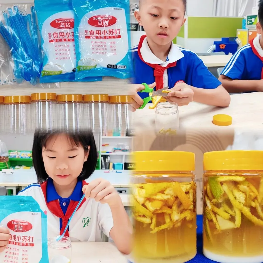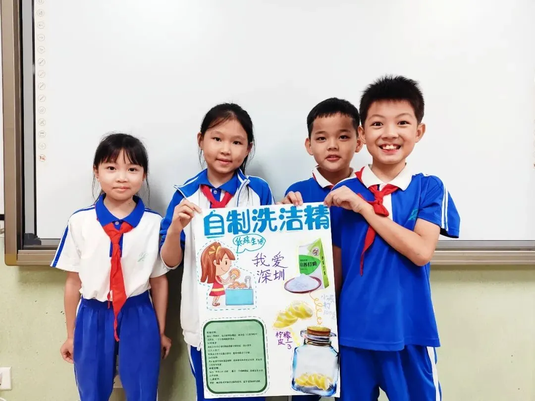 活动设计丰富多元且层层递进,围绕低碳校园、低碳家庭、低碳社区三大板块开展系列实践:校园里做废纸调查、制再生纸、宣垃圾分类、改废旧瓶子、做图书循环调查与童书乐捐;家庭中开展用电和出行方式问卷调查,亲手制作并测试环保洗洁精;社区里参与 “无废城市” 宣传、垃圾分类科普,让低碳理念从校园走向生活,让科学实践落地生根。